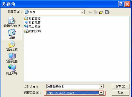 5、选择保存类型为 JPEG, 取一个文件名,保存即可完成。
